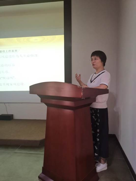 杨震一生既以“四知”美名留青史,又以清白家风传千年。在纪念馆多功能厅,党员干部集体观看了专题片《杨震—清白家风传千古》,深层次感悟了杨震的高尚品行、杨氏“四世三公”的美誉背后的精神基因-- “清白吏子孙”的家风。随后,党总支副书记王艳以《严于律己廉洁齐家,做培育良好家风的表率 》为题,给党员干部上了一堂“家风”主题党课。带领大家深入领会习近平总书记关于家风建设重要论述的丰富内涵,充分认识家风建设的重要意义,并号召党员干部以习近平总书记关于家风建设重要论述为遵循,切实把家风建设好,为家庭和事业打好基础。
