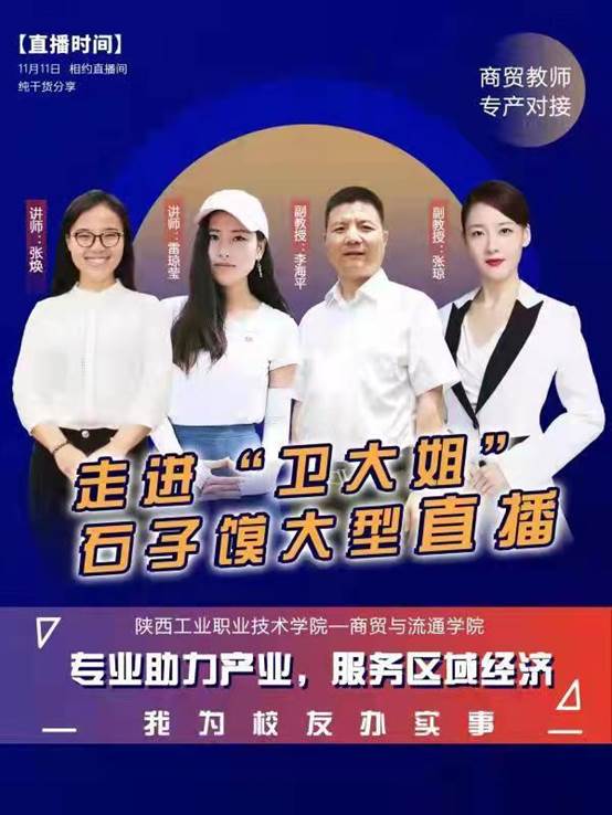 我校07级校友寇博鈜于2014年创办陕西卫大姐食品有限公司。“双十一”购物节来临之际,教师第二党支部组织全体党员召开研讨会,帮助企业分析研判市场形势,拓展销售渠道,提高销售质量。11月11日,电子商务专业和市场营销专业的老师们来到了陕西卫大姐食品有限公司,利用自己的专业知识和技能优势,为校友的企业做了一场大型的电商直播宣传销售活动。借助抖音、淘宝等平台,张琼、雷琼莹两位老师化身网络主播,献上了一场直播盛宴,让极具陕西蒲城地方特色的石头饼漫步“云端”,走入千家万户生活。直播间气氛热烈,主播幽默生动的语言,品质良好的产品,优惠亲民的价格,引得网友点赞评论。直播宣传活动持续了近1个小时,共有近千人观看了直播。直播结束后,支部党员和企业管理人员还进行了深入交流,为企业产品销售出谋划策。