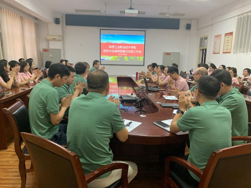 动员会上,参会师生集体观看刘宇哲老师制作的商贸与流通学院发展历程和成果PPT——《十五年,做红心商贸人,十五年,干阳光流通事》,回顾商贸流通学院在渭城校区风雨兼程的十五年,激励全体教职工在搬迁新校区后不忘初心,砥砺奋进;电子商务党小组张焕同志带领大家领学了商贸与流通学院专业建设及人才培养价值导向系统,介绍了带领电子商务技能大赛团队制作的2022届毕业生云合影;杨涛同志介绍商贸与流通学院网站改版情况,学工办主任成志平介绍商贸与流通学院官方公众号、视频号——陕工院商贸流通派和改版的商贸先锋之声。