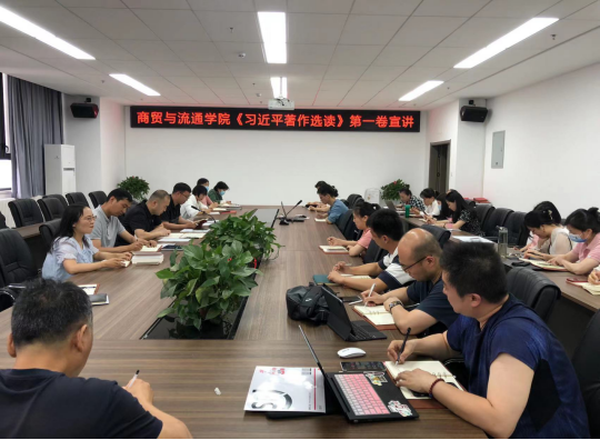 为深入开展学习贯彻习近平新时代中国特色社会主义思想主题教育,根据学校关于开展《习近平著作选读》第一卷、第二卷宣讲工作的通知要求,6月12日下午,商贸与流通学院教师党支部在经开校区崇理楼六楼会议室开展《习近平著作选读》第一卷、第二卷宣讲工作,会议由商贸与流通学院教师支部书记晋淑惠同志主持,全体教师党员参加了会议。