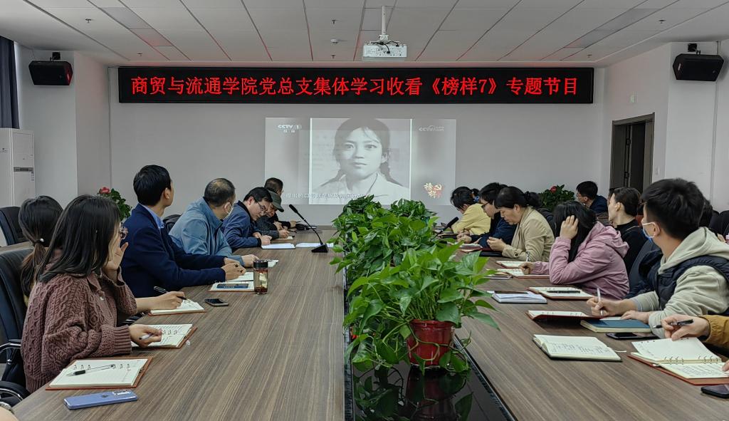 为深入学习贯彻习近平新时代中国特色社会主义思想和党的二十大精神,充分发挥先进典型示范引领作用,2023年3月27日下午,商贸与流通学院党总支组织全体教师党员在崇理楼B604会议室集体学习收看《榜样7》专题节目。