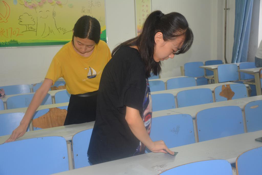 此次活动组织有序、分工明确,分组清理教室课桌上、墙面及窗帘上的小抄。在活动过程中,同学们积极参与,不怕脏,不喊累,相互配合,展现了新时代大学生阳光向上、积极进取的精神面貌。
