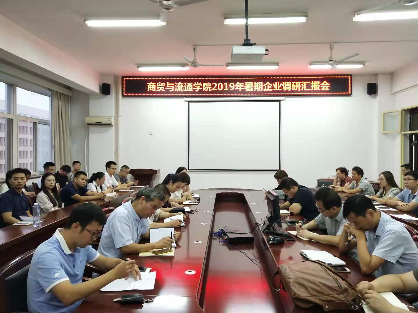 8月26日下午,商贸与流通学院在崇文楼五楼会议室召开暑期企业调研汇报会,党总支书记陈昊平、院长王永莲、党总支副书记王艳和全体教师参会。