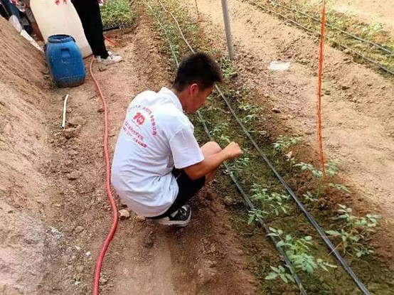 在前期村集体经济产业园增添龙骨杆桩、铁丝、支撑杆等配套设施的基础上,村两委投资引进滴灌水肥一体化种植技术,为产业园后期高质量养护打下坚实基础。通过线上学习技术,线下请教专家,结合村产业园实际,驻村工作队和村两委干部自主规划安装了施肥罐、主管道、毛细滴管等设施,低成本完成产业园配套设施装备。