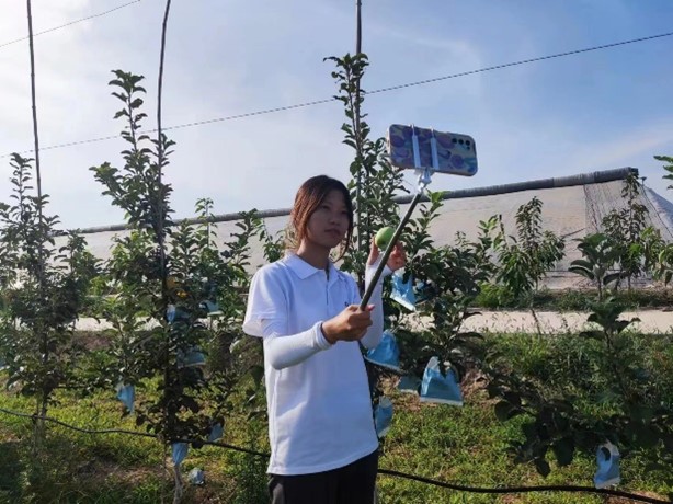 同学们通过仔细观察,认真听着农户介绍,充分了解种植农户的需求,运用所学专业知识,通过直播的方式像各大网友介绍了苹果和西红柿的种植方法。