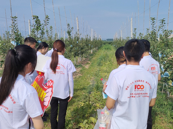 石桥镇寺村地形处于群山之间,自然条件较差。在基本熟悉寺村的环境和产业结构情况后,寺村村支部书记带领实践团队成员前往农业产业园区进行实地考察,在与村民交流中得知这是一处以种植苹果为主的现代农业产业园,现已培育发展“瑞雪”苹果40亩。