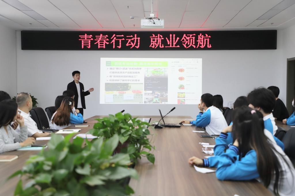 吴煜涵讲述了童年陪着爷爷种下杨梅和水稻,看着亲戚朋友养殖得海带和紫菜,他的记忆离不开这霞浦这片乡土和乡亲,为了家人能够减轻负担,他在18岁那年应征入伍,面对中印冲突,在他心中悄悄埋下了助力乡村振兴的种子,退役复学后,吴煜涵结合所学专业,不断探索实践,先后研发了“急派果果”微信小程序并注册陕西锦煜佳强商贸有限公司。通过“线上+线下”的方式把优质农产品和校园需求联系起来,让农民更加方便、快捷的售卖,让老师同学们更加放心、安心的购买。开业当天,学校领导也亲自到场剪彩点赞。
