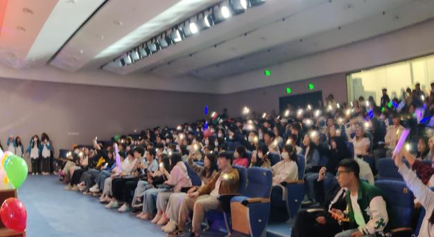 此次晚会持续了一个半小时,全场沉浸在一片欢快激情的氛围中。表演中间还穿插了现场扫码和击鼓传花等小游戏,既活跃了现场气氛又让同学们参与了其中,使得庆典更有活力和意义。