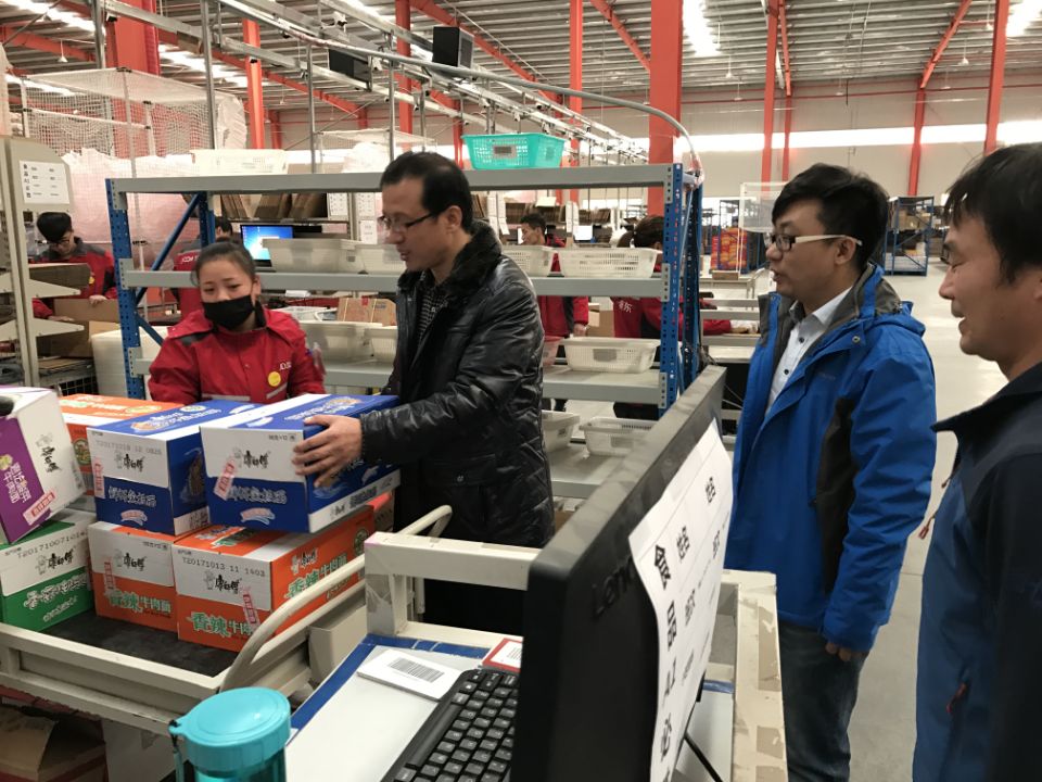 在北京京东华北区副总王琦和我院驻企指导教师王建武的陪同下,杨院长深入京东集团华北分公司物流园区仓库,检查学生实习情况。同时与实习学生、指导教师亲切交流,了解学生的工作环境、劳动强度、技能锻炼、薪资待遇及公司对学生实习过程的管理和安排情况。杨院长还鼓励同学们按照企业和学院的要求,再接再厉,圆满完成实习任务,确保学有所成。