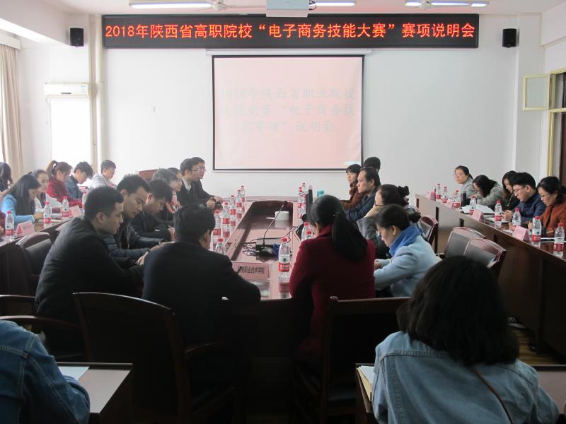 花香满园,春意盎然,3月9日,物流管理学院成功举行2018年陕西省职业院校技能竞赛“电子商务技能赛项”说明会。来自全省23所兄弟院校的40多名领导和老师参加了此次会议。物流管理学院院长李选芒、电子商务教研室全体教师、中教畅享(北京)科技有限公司技术总监张强林等参加了本次会议。会议由物流管理学院副院长王永莲教授主持。