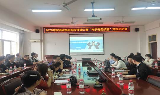 9月28日下午,商贸与流通学院在崇文楼五楼会议室成功举行了2020年陕西省高等职业院校技能大赛“电子商务技能”竞赛启动会。来自全省的21所高职院校、40余名教师参加了大会。商贸与流通学院院长王永莲教授、电子商务教研室主任李海平副教授、中教畅享(北京)科技有限公司西北区经理邢俊翕等参会,会议由商贸与流通学院实训中心主任杨涛主持。