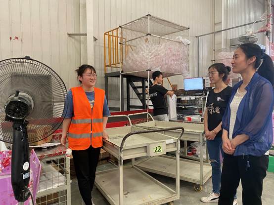 一行人在京东西北分公司人力资源经理白光泽、人事主管陈云鹏、电子商务教研室主任李海平的陪同下,分别检查了京东西北分公司万纬、京通、东盈、IDC和亚洲一号等五个园区,对学生的实习场地、住宿环境和饮食环境进行了全方位检查,并与企业导师、实习学生和我院现场指导教师进行了座谈,了解学生的实习感受和收获,听取了实习学生的工作心得和生活情况汇报。