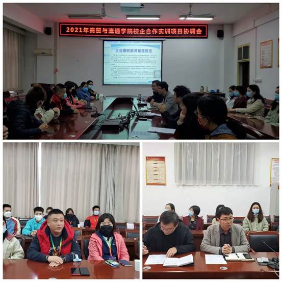10月20日下午,商贸与流通学院在崇文楼五楼会议室召开了2021届校企合作实训项目协调会。本次会议由实训中心主任杨涛主持,校企合作实训项目校内指导教师、企业兼职教师及实训中心全体教师参会。