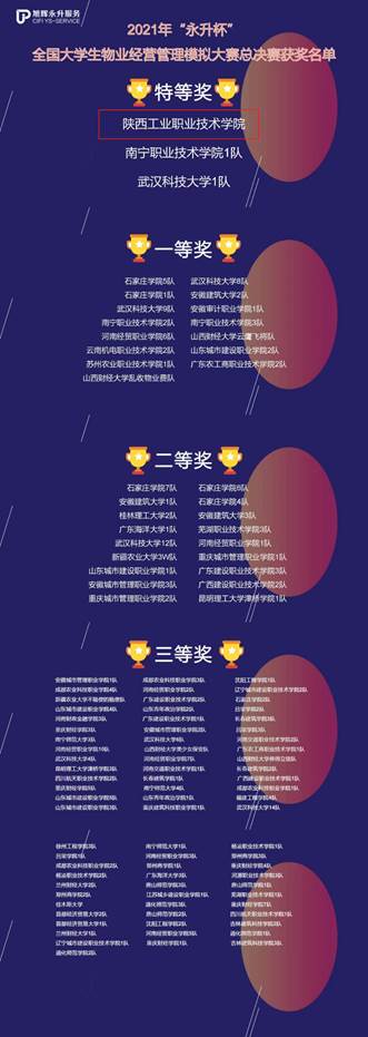 11月13日,2021年“永升杯”全国大学生物业经营管理模拟大赛总决赛落下帷幕,我校商贸与流通学院帅珍珍、李倩老师指导,杨浩楠、沈甲华、郭英骁三位学生组成的参赛队在本次总决赛中以总分第一的成绩斩获团体特等奖。