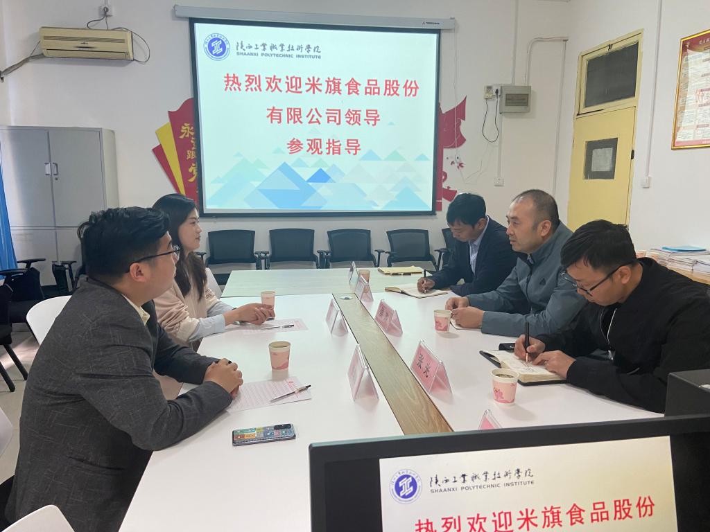 4月28日,米旗食品股份有限公司代表王丹、张瑞祥一行到访我院洽谈供需对接就业育人项目,学院领导班子成员和校企合作专员在崇文北楼就业洽谈会议室接待王丹代表一行,双方就订单班合作、就业育人、储备干部招聘等具体落地举措进行座谈。