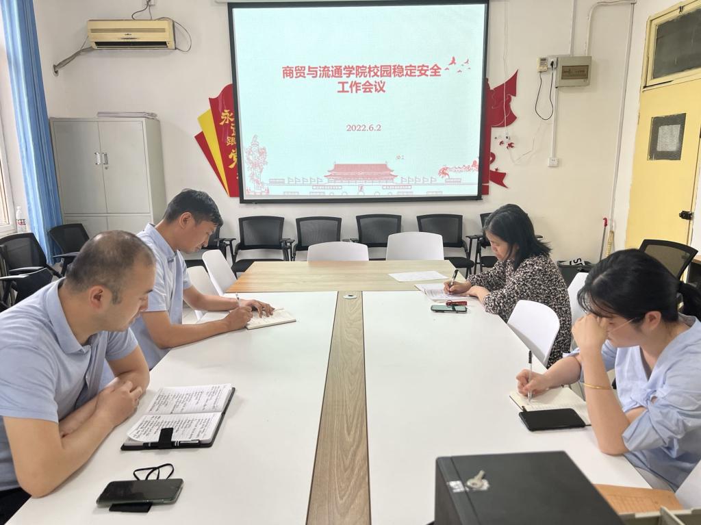 2022年6月2日下午,商贸与流通学院在崇文南A501会议室召开稳定安全工作会议,学院领导班子、各教研室主任、党支部书记参加此次专题会议。会议由党总支副书记侯涛同志主持。