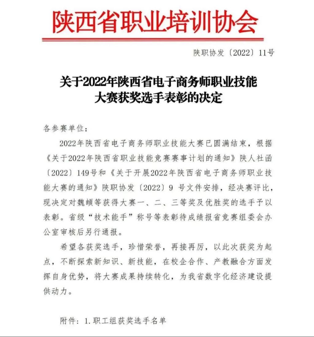 12月13日上午,由陕西省职业培训协会主办、陕西蓝天民航技师学院承办、中教畅想(北京)科技有限公司协办的2022年陕西省电子商务师职业技能大赛决赛落下帷幕。我院李婷老师作为职工组选手参加此次总决赛,荣获竞赛二等奖。
