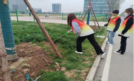 商贸与流通学院学生第一党支部开展“绿色校园,你我有责”志愿服务活动