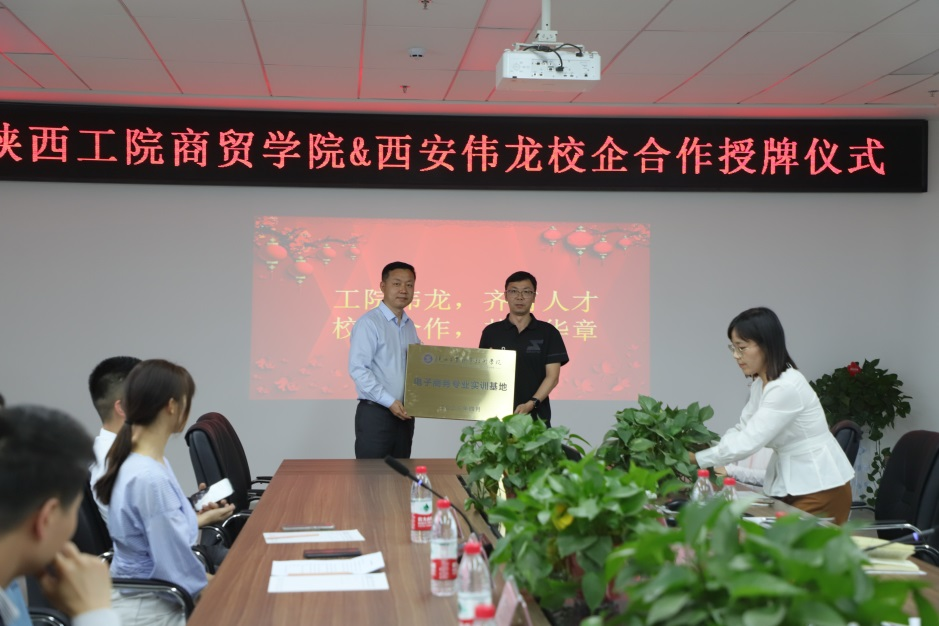 5月15日,为深化校企合作,创新校企协同育人模式,商贸与流通学院电子商务专业与西安伟龙实业发展有限公司校企合作授牌仪式在我院经开校区商贸与流通学院会议室举行。商贸与流通学院副院长张光、实训中心主任杨涛、以及电子商务教研室全体教职工出席了此次仪式。