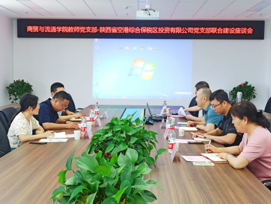2023年6月25日下午14点半,商贸与流通学院教师党支部和陕西省空港综合保税区投资有限公司党支部联合举办的座谈会议在陕西工业职业技术学院经开校区崇理楼B604举行。