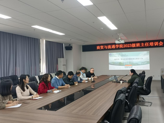 为使我院全体教师进一步明确班主任工作的地位、作用和职责,坚持立德树人,促进班主任队伍建设和班主任工作制度化、规范化、科学化,商贸与流通学院于11月23日下午在崇理B604会议室开展2023级班主任培训会。本次培训由校学生处心理咨询中心主任柳林主讲,商贸学院党总支副书记蒋鹏、2023级全体辅导员、班主任参会。
