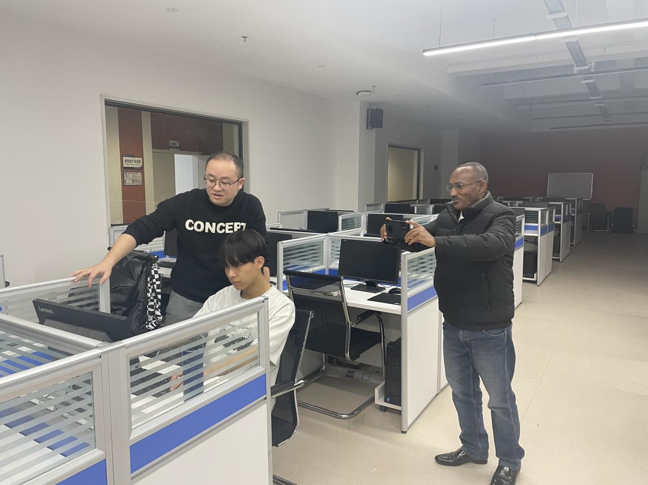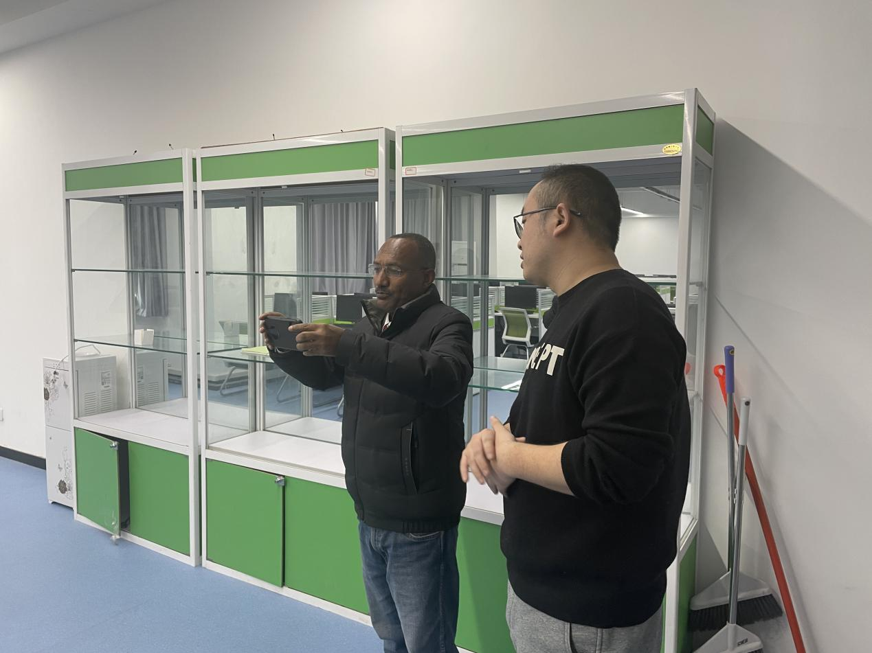 12月11日下午,在国际合作与交流处办公室主任辛旗陪同下,埃塞俄比亚温盖特理工学院国际合作项目主管杰马尔·穆罕默德先生来我院参观交流。商贸与流通学院实训中心主任杨涛、电子商务教研室主任李思维和现代物流管理教研室主任高贺云陪同参观。