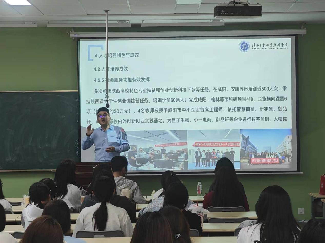 接着连锁经营与管理专业的专业带头人晋淑惠老师,从人才培养目标、课程体系设置、实训条件、就业岗位、优秀毕业生等多个方面为同学们揭示了专业的丰富内涵,同时着重强调了学院独创的“智慧商贸综合技能中心”和“实境育人、校园创业”的独特人才培养模式。