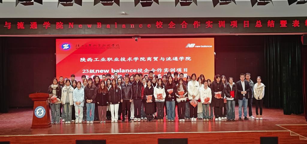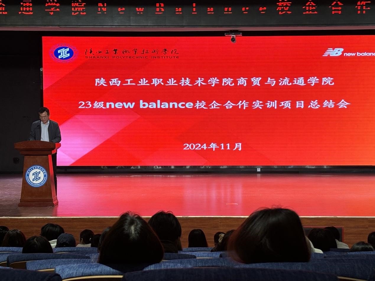 2024年11月22日,商贸与流通学院和New balance校企合作实训项目总结会在我校经开校区图文信息中心报告二厅成功举行。此次会议不仅是对过去数周实训成果的总结,更是对同学们努力付出的高度肯定,体现了学院领导对实训教学成果的深切关心与大力支持。学院领导对此次实训高度重视,商贸与流通学院党总支副书记蒋鹏、副院长张光(主持工作)、副院长杨涛、教学办主任赵彧、商数教研室主任孙菲以及物流教研室主任高贺云和教研室教师代表等出席会议,与实训企业方代表共同见证学生们的成长与收获。