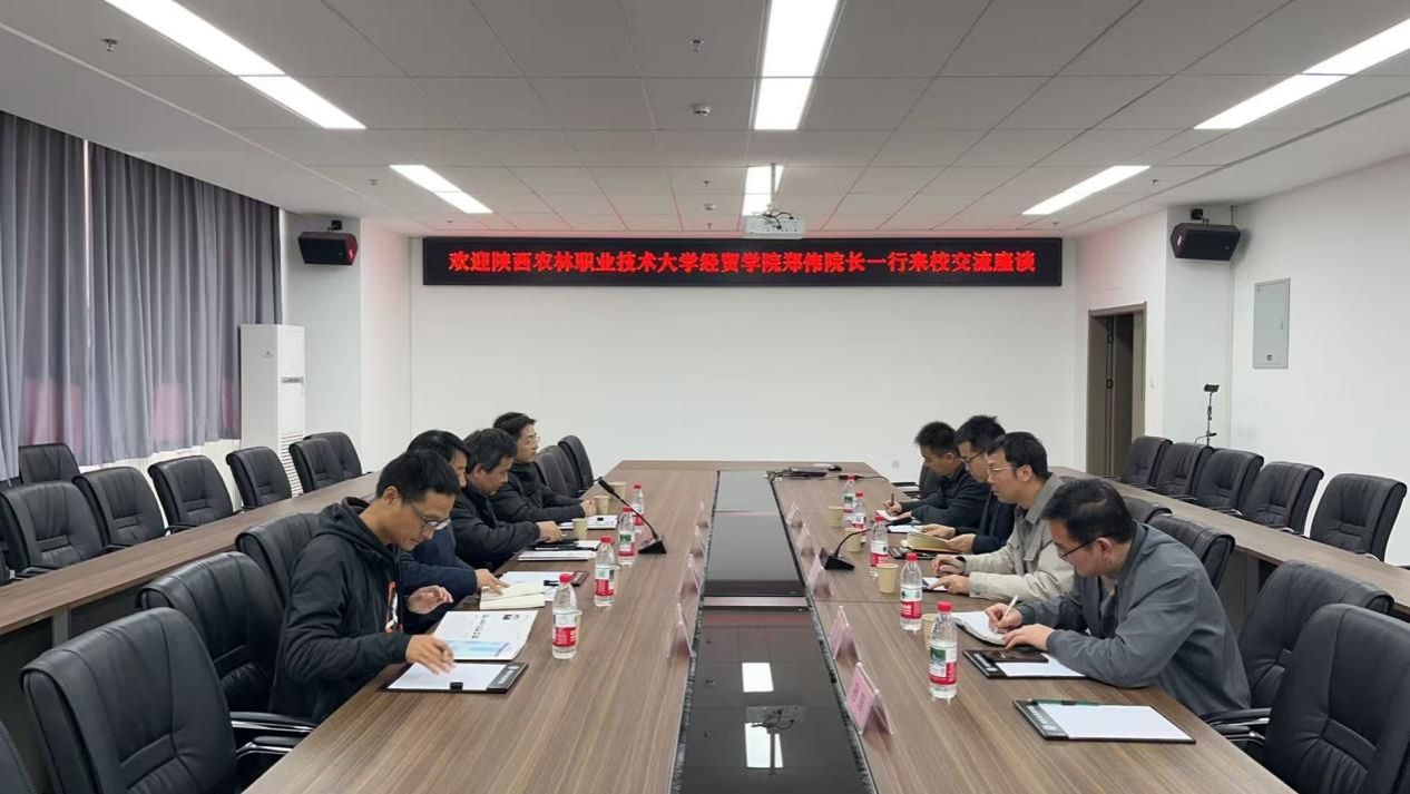 12月10日,陕西农林职业技术大学经济与贸易学院院长郑伟一行莅临我校商贸与流通学院,围绕专业建设、实训基地建设、校企合作深化等核心议题开展交流座谈。商贸与流通学院副院长张光、副院长杨涛和相关部门人员出席座谈。